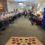 The morning got off to an excellent start, with impressive shots made, some narrow misses, and fierce competition throughout the Round Robin. A standout moment came when Sophie shouted, “Watch this, Ted!” before smoothly sinking her throw at Bean Bag Toss. The whole room erupted with cheers and shouts!