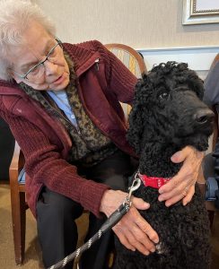 We’ve observed our residents brightening up immediately when a favourite pet owner stops by to drop off their poodle – there’s an immediate point of connection, and the physical affection shown by dogs is incredibly valuable.