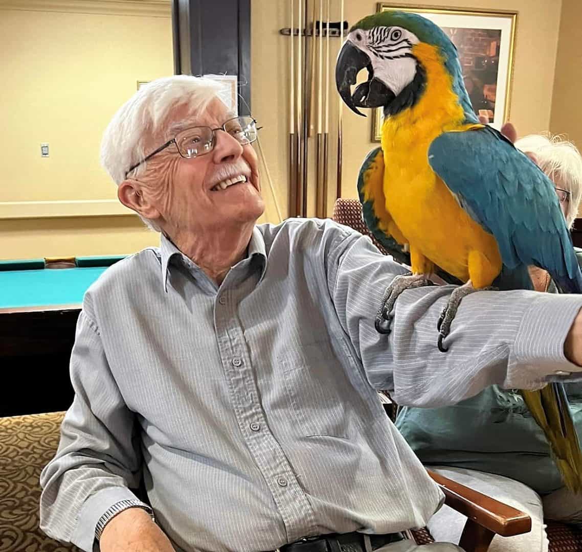 Some of our residents bring their own pets, at no extra charge! Our caring staff helps manage the animals and everyone gets to enjoy a furry residence mascot 24/ 7. Otherwise, we arrange for animals to visit.