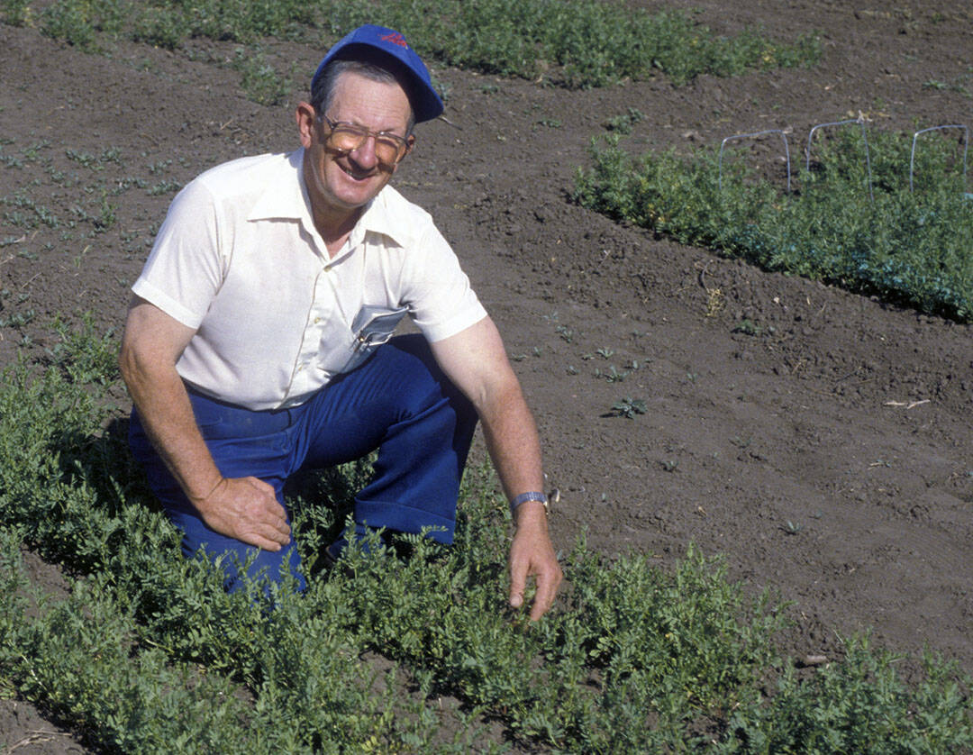 After completing his doctorate, Slinkard accepted a position at the University of Idaho because it was closer to his parent’s home. He spent the next 17 years as an inspirational teacher, and plant and grass breeder, “with winter peas on the side”.