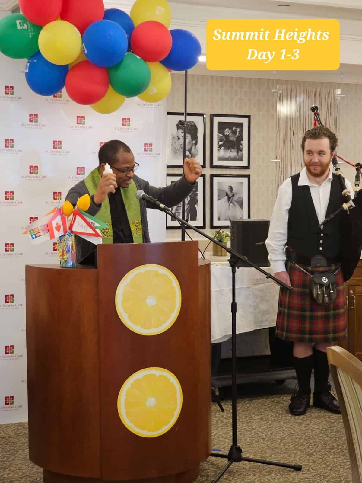 Our First Annual Seniors Games at Aspen Heights Retirement Residence was a huge success! We have estimated 75 attendees. The Ceremony commencement by renowned Calgarian Bagpiper Jeanie Schultz was moving. With Aspen Heights Managers, City Councillor Richard Pootmans and Community Liaison Suzy Trottier in procession, it was beautiful!