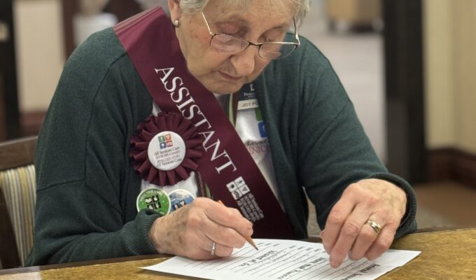 When resident competitor, Brenda S., won bingo, the whole dining room could hear it with a lion-like roar of “BIIIINGOOOOOO.”