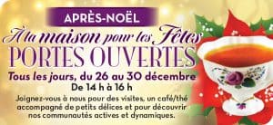 Communiquez avec nous dès maintenant! Si vous souhaitez visiter l’une de nos maisons de retraite pour personnes âgées, ne manquez pas d’assister aux journées portes ouvertes ‘À la maison pour les Fêtes’ . Elles ont lieu tous les jours de 14 h à 16 h du 26 au 30 décembre 2022.