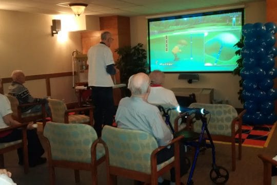 There were some “fan”tastic highlights today. At Edmonton’s Rutherford Heights, Gold Medalist Larry M. exclaimed: “It’s been a lot of years since I have been on a real golf course and I guarantee if I went today I wouldn’t get a score worthy of a gold medal!” Meanwhile over at Preston Park II, where husband and wife duo ties and both won a National Silver, Mary and Len H., exclaimed: “It is always fun competing against each other. We always have such great and friendly competition. However, this year we finished in a tie and both took home the gold!” It seemed many couples were competing today as witnessed at Stratford’s McCarthy Place where Husband and wife (Ken & Evelyn) had went head to head in shuffleboard, with lots of friendly banter that had the room in splitting laughter. Ken ended with a chuckle; “You sure know how to ruin a good marriage! And, just so you know, I didn’t throw the game honey, but as they say happy wife, happy life!” And during the medal presentation at Ottawa’s Beacon Heights, Gold Medalist Niki T. gave everyone some solid advice: ”You need to practice, practice, practice every time there’s a game on the weekly calendar, and go out and participate to win gold.”