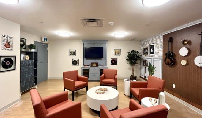 The wide range of life enrichment programs means a more fulfilling and active life. Amenities include a theatre, a multipurpose room, mini-putt course, games room and lounge, a fitness centre, library, and in indoor pool. Why not take part in the many events offered at our community? From vising musicians and entertainers to guest speakers (who cover everything from historical events to popular tutorials), there is something for everyone.