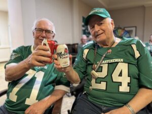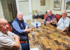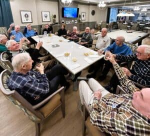 Every Friday at 3 p.m. at Cataraqui Heights senior living in Kingston, ON the Men’s Friendship Club gathers in the private dining room, bringing together a steady group of about nine regulars. The atmosphere is relaxed and welcoming, guided by just two simple rules: no Canadian politics and no religious discussions. And don’t worry, when Health & Wellness Director Natasha Edwards delivers beverages and snacks, she’s “not listening”!